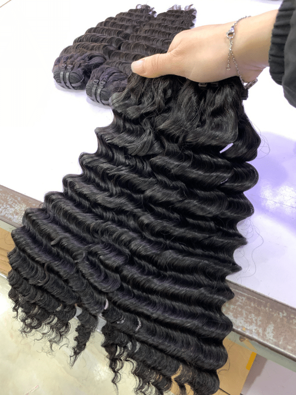 All deep wave bundles are sourced from verified Vietnamese donors in rural regions known for strong, healthy hair. The hair is washed with natural herbal ingredients and steamed carefully to preserve moisture, curl elasticity, and natural shine. This ensures the curls stay defined, bouncy, and long-lasting.